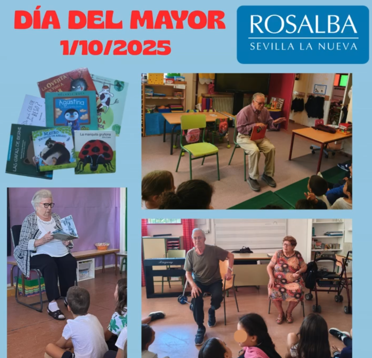El día 1 de octubre se celebra el Día Internacional de las Personas de Edad y algunos usuarios de la residencia Rosalba de Sevilla la Nueva lo han festejado, participando en un encuentro intergeneracional con alumnos del Colegio Duque de Rivas de la misma localidad.