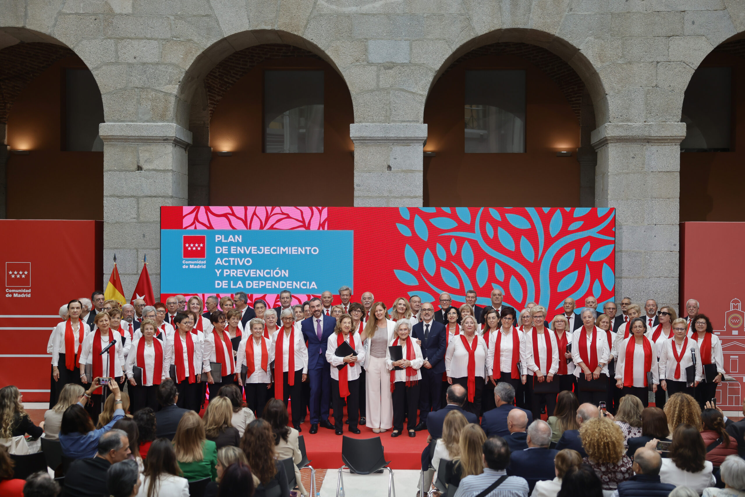 La presentación ha tenido lugar en la Real Casa de Correos junto a una representación de sus protagonistas: casi 200 usuarios de centros de mayores, centros de día y residencias, representantes del Consejo Regional de Mayores y miembros de Asociaciones y Voluntarios.